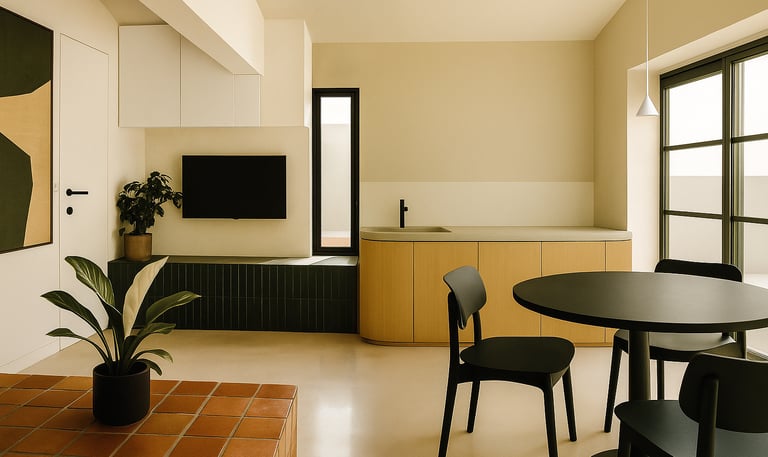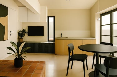 Ce réagencement intérieur réinvente l’espace sans en bouleverser la structure. Le mobilier trouve une nouvelle place, les couleurs et les matières dialoguent avec subtilité, et la lumière redessine les volumes. L’ambiance se transforme, plus fluide, plus harmonieuse, révélant toute l’âme du lieu.